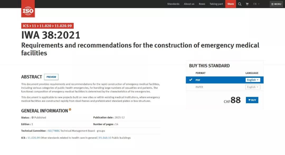 中国中元牵头提出的ISO/IWA 38《应急医疗设施建设导则》正式发布